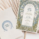 Este convite de noivado deslumbrante apresenta o icônico estilo Art Nouveau de Alphonse Mucha. O design é inspirado nas linhas elegantes e curvas fluidas do Art Nouveau, com um toque de glamour Art Deco. O convite apresenta detalhes florais intrincados. O texto é impresso em uma fonte estilosa, perfeito para qualquer celebração de noivado elegante.