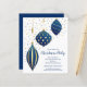 Os pequenos convites de 4,5" x 5,6" apresentam ornamentos azuis-escuros e dourados das árvores de Natal e os detalhes da sua festa de Natal em caracteres chicos sobre um fundo azul-claro. Estes convites para baratos são impressos em estoque de cartonagem de semirbrilho de 110 lb, disponível em 3 tamanhos. **ENVELOPES brancos SÃO OPCIONAIS e podem ser adicionados a seu pedido a um custo adicional. Certifique-se de verificar seu pedido duas vezes antes de adicioná-lo ao seu carrinho, pois o que você vê na tela é o que será impresso. O Serviço de Design ao Vivo pode ajudá-lo com seu layout de design, se necessário. CORRESPONDENDO a itens na nossa loja.