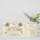 convites de aniversário de casamento - passagens de embarque com tema de praia vintage, avião antigo, composição de palmeiras e design de fontes tipográficas bonitas.
