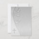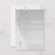 Convite de primeira comunhão branco com redemoinhos cinza prateado elegante. Este lindo convite de primeira comunhão branco é facilmente personalizado para o seu evento, bastando clicar no botão "Personalize!" para começar a adicionar os detalhes do evento, estilo de fonte, tamanho e cor da fonte e texto. Por favor, note que todos os adesivos, cartões e convites que você encontrará no Zazzle são gráficos impressos sem joias, laços, relevos, ou quaisquer outras partes ou peças adicionadas.