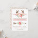 Convites de festa de aniversário de uma menina com antílope com flores em aquarela e flecha com faixa de nome e fundo tribal coordenado. Você pode personalizar facilmente esses adoráveis convites de festa de aniversário tribal para meninas para o seu evento simplesmente adicionando seus detalhes. Você também pode alterar o texto na faixa do antílope.