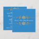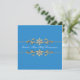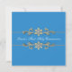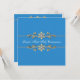 Elegante convite de Primeira Comunhão para meninas azul com acabamento de floreado dourado e diamante.