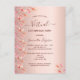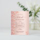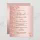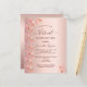 Um convite de aniversário virtual 21 (ou qualquer idade) feminino e feminino. Na frente: Um fundo rosa dourado falso metálico, com aspecto de folha de alumínio. Decorados com ouro rosa e flores cor-de-rosa, caem folhas botânicas. Personalize e adicione um nome e detalhes do grupo Zoom/Skype. O nome e o texto: Virtual são escritos com um script de estilo manuscrito, letras rosa douradas escuras. Fundo: rosa dourado. Dica: Se você não quiser que pareça um cartão postal, clique em personalizar, vá para o verso e remova o divisor e o carimbo de posto.