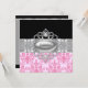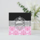 Convites de Quinceanera diamantes prateados pérolas rosa preto.