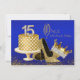 Real azul e ouro Quinceanera convida com belos bolos de ouro com números de diamante, calçados de salto alto com brilho dourado e princesa de ouro e diamante elegante tiara em um fundo real azul e ouro. Você pode personalizar facilmente esses belos convites de Quinceanera preto e dourado para seu evento simplesmente adicionando seus detalhes no estilo de fonte e na redação de sua escolha. Este é um design impresso sem brilho real, diamantes, arcos etc. Você também pode remover o plano de fundo azul e alterar a cor do plano de fundo.