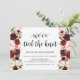 Este cartão de convite temático floral burgonha rústico é perfeito para a celebração da recepção / festa do seu casamento. Adicione seus detalhes em fonte / letra preta correspondente.