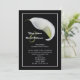 Os casais geralmente preferem convidar amigos para uma recepção pós-casamento em vez de uma recepção de casamento. Esta é uma ótima maneira de deixar todos saberem que você é casado e celebrar seu casamento após o casamento. Este convite elegante de recepção pós-casamento floral apresenta um lírio calla branco em um fundo preto. Os nomes da noiva e do noivo aparecem à esquerda do lírio com todos os detalhes do convite da recepção pós-casamento abaixo. Um convite de recepção pós-casamento muito elegante e lindo. Copyright henishouseofpaper