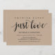 Este convite de casamento rústico em kraft para fuga romântica é perfeito para o seu casamento e festa de celebração pós-casamento. Adicione seus detalhes na fonte / letra preta correspondente.