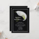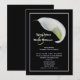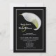 Os casais geralmente preferem convidar amigos para uma recepção pós-casamento em vez de uma recepção de casamento. Esta é uma ótima maneira de deixar todos saberem que você é casado e celebrar seu casamento após o casamento. Este convite elegante de recepção pós-casamento com flores apresenta um lírio calla branco em um fundo preto. Os nomes da noiva e do noivo aparecem à esquerda do lírio com todos os detalhes do convite da recepção pós-casamento abaixo. Um convite de recepção pós-casamento muito elegante e lindo. Copyright henishouseofpaper