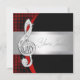 Elegante convite de recital de música prateado em vermelho e preto. Este convite de evento musical de clave de sol em vermelho e preto elegante serve para um convite de concerto, recital de piano, convite de sinfonia ou qualquer outra apresentação musical. Para personalizar para o seu evento, basta escolher o botão "Personalize!" para começar a adicionar os detalhes do seu evento, estilo de fonte, tamanho e cor da fonte e texto. Por favor, note que todos os desenhos de convite que você encontrará no Zazzle são gráficos impressos em papel liso sem partes ou peças salientes ou adicionadas.