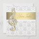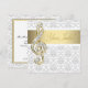 Convites elegantes de recital de música cinza damask dourado com um desenho de clave de sol dourada e diamantada. O convite damask de clave de sol é perfeito para convites de recital, convite de concerto, recital de piano, convite de sinfonia ou qualquer outra apresentação musical. Este convite de clave de sol elegante é facilmente personalizado para o seu evento, adicionando detalhes do evento, estilo de fonte, tamanho e cor da fonte e texto.
