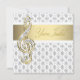 Convite elegante para concerto de treble clef dourado em damasco cinza, modelo de evento musical e recital de música. Este convite bonito com treble clef em damasco é perfeito para convites de recital, convite de concerto, recital de piano, convite de sinfonia ou qualquer outra apresentação musical. Este convite de evento musical elegante é facilmente personalizado para o seu evento simplesmente escolhendo o botão "Personalize!" para começar a adicionar os detalhes do seu evento, estilo de fonte, tamanho e cor da fonte e texto. Por favor, note que todos os cartões e desenhos de convite que você encontrará na Zazzle são gráficos impressos sem joias reais, laços, relevos, rebaixados ou peças ou partes adicionadas.