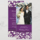Convites de casamento elegantes renovações de fotos personalizadas em beringelas escuras, roxo e cor damasco floral de natas brancas com texto totalmente personalizável para incluir os detalhes da sua cerimônia de renovação de promessas.