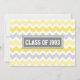 Convites para a festa de reunião anual da sua escola em um padrão brilhante e ousado, amarelo-limão, branco e cinza retro chevron zigzags. Personalizável com os detalhes do seu partido e o seu ano de graduação, entre em contato conosco para obter uma cor personalizada.