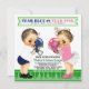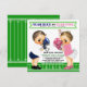 Convites de revelação de gênero de futebol com adoráveis bebê menino e bebê menina de cabelo castanho usando roupas de futebol em um fundo de campo de futebol fofo. Você pode personalizar facilmente este convite de revelação de gênero de futebol para o seu evento simplesmente adicionando seus detalhes.