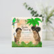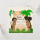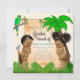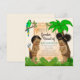 Convites de revelação de gênero da selva com adorável menino e menina étnicos em um fundo de selva fofo. Este convite de revelação de gênero da selva safari é facilmente personalizado para o seu evento, basta adicionar seus detalhes.