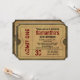 Convites de tíquete, estilo antigo de vintage Dourado. personalize com as informações de sua parte. Faz um excelente, um convite único para qualquer ocasião! Estimulado para se parecer com um verdadeiro bilhete de entrada com cortes falsos e lados perfurados falsos, este convite nostálgico e divertido é excelente para uma festa de aniversário em qualquer idade! Padrão de fundo do estilo de pergaminho com aparência avançada com letras pretas e burgundy em uma fonte com estilo resfriado.