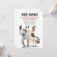 Um convite com tema western apresentando um jovem cowboy inclinando o chapéu enquanto seu cavalo levanta as patas traseiras. (Vetor de dança criado por freepik - www.freepik.com). O cartão é fácil de personalizar com sua redação, fonte e cor da fonte. Não é exatamente o que você está procurando? Todos os nossos produtos podem ser personalizados para atender às suas necessidades sem custo adicional. Basta entrar em contato conosco em askcottonlamb@gmail.com. Produtos coordenados disponíveis a seu pedido sem custo adicional.