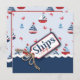 Cores náuticas em veleiros clássicos, vermelhos, brancos e azuis, com âncora e caranguejos, e uma marca de aparência tridimensional novidade com fio.