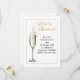 Convites de Vidro Elegante Personalizáveis **Descrição:** Adicione um toque de elegância do eterno ao seu próximo evento com a Celebração em Estilo: Convites de Vidro de Champanhe Personalizáveis Modernos Elegantes. Este belo convite apresenta uma design minimalista com uma silhueta de vidro de champanhe solteiro, perfeita para qualquer ocasião, desde encontros de férias e reuniões a eventos e banquetes corporativos. **Aqui está o que torna este convite especial:** ***Personalizável:** Todo o texto, fontes e cores podem ser facilmente alterados para corresponder ao tema e marca do evento específico. ***Versátil:** Adequado para uma variedade de eventos, incluindo casamentos, noivados, aniversários, graduações, feriados e muito mais. * ** Moderno e na moda:** O design minimalista com um copo de champanhe de solteiro é sofisticado e atraente para os olhos. * ** Impressão de alta qualidade:** Impresso em papel de alta qualidade com cores vibrantes e detalhes nítidos. * ** Ambiental:** Feito com materiais de reciclado. ** Então, quantos podemos fazer por você? ** Peça hoje! Celebre no Estilo: Elegante Convite Moderno para Vidro de Champanhe hoje e torne seu próximo evento realmente inesquecível!