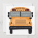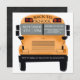 De volta à escola um ônibus engraçado no final do convite de festas de verão com um tradicional ônibus escolar laranja desenhado à mão.