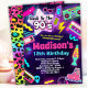 Meninas de volta ao convite da festa temática dos anos 90 em bonito cores do arco-íris.