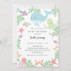 Cores pastéis bonitos Sob o convite para chás de fraldas do tema Mar. Projetada e ilustrada com amor por Kristine Lee Designs www.kristineleedesigns.com