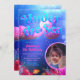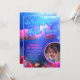 Este convite usa azul e rosa como paleta de cores principal. A profundidade no design é dada atenção fazendo com que os peixes pareçam muito distantes do ponto de vista focal principal. Efeitos de iluminação são usados especialmente na cauda da sereia, para torná-la a estrela do design