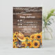 Este convite de aniversário rustic wood 16th com seus girassóis, chapéu ocidental e botas apresenta uma área de texto personalizável que permite incluir sem esforço todos os detalhes necessários para sua celebração especial de aniversário, incluindo a data, hora, local e informações de RSVP. Vários tipos de papel e estilos de canto estão disponíveis para seus convites exclusivos, juntamente com a opção de download.