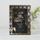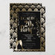Este Deco de Arte, tema dos anos 20, convite de festas de Ano Novo apresenta um design preto e dourado. O fundo do convite é preto e o texto e as imagens são impressos em ouro brilhante. Uma imagem metálica brilhante de ouro aparece no centro com todas as informações do partido. Os pontos de confetti são colocados perto da parte superior e inferior, e dois flautas de champanhe dourados são recursos no canto inferior esquerdo. Várias galerias e peças de confete são colocadas em ambos os lados do texto. A borda externa do convite contém um padrão de estilo de deco de arte em ouro e preto. Um exemplo de nome de host é impresso no topo seguido de "Roaring 20s new Year's Eve Party" (Grupo de Ano Novo) impresso em fontes retroradas ou de estilo de vintage. As informações de terceiros restantes podem ser personalizadas para incluir suas próprias informações. Anel no novo ano de 2020 e na nova década com uma celebração incrível e memorável.