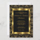 Convite de Aniversário de Casamento com Diamante Preto e Ouro Estilo Art Deco. Elegante laço de jóia e desenho floral com brilho dourado. Eles NÃO contêm Jóias ou Laços Reais!