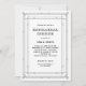 Este glamouroso convite de janto de ensaio de casamento apresenta um giro moderno em deco de arte clássico. Um quadro geométrico ornamentado, preto e ornamentado decorou um fundo branco elegante para um olhar dramático e vintage.