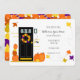 Esta divertida porta da frente é uma maneira bem-vinda de convidar seus amigos para uma celebração calorosa. Inclui abóboras ilustradas, jack-o-lanternas e uma aranha. O contrário é folhas divertidas e coloridas. Excelente para uma festa de Halloween, casa aberta, aquecimento doméstico e muito mais!