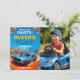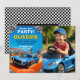 Um design de aniversário de carros de corrida divertido e enérgico com cores vibrantes e detalhes lúdicos, perfeito para uma celebração rápida para pequenos corredores.