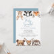 Este convite de sprinkle de bebê de animais watercolor da floresta azul pode ser personalizado com suas informações em tipografia moderna. Projetado por Thisisnotme©
