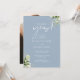 Este convite de festa de compromisso floral verde poeira azul elegante pode ser personalizado com suas informações em tipografia chic com sua foto no verso. Projetado por Thisisnotme©