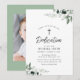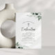 Um modelo de convite de dedicação elegante com folhagem verde-aquarela. O texto, a foto e as cores podem ser editados.