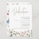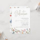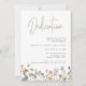 Um convite bonito para dedicação com "Dedicação" em fonte verde e moderna escrita manual, e uma borda inferior de flores silvestres de aquarela e uma borboleta. O reverso apresenta um padrão de flores silvestres e borboletas. Personalize com seus detalhes.