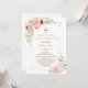 Design de cartão elegante com cantos de flores roxas cor-de-água cor rosa, um falso quadro de brilho dourado, confete, cruz dourada falsa, divisor floral, sobre fundo branco. Nas costas, buquê e cruz flores. Use a ferramenta Personalizar para adicionar suas informações, alterar fontes, cores da fonte. Para obter itens correspondentes, visite minha coleção de dedicação.