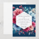 Rich floral artwork cascades in vibrant hues of fuchsia and soft sky blue against a deep navy backdrop. Delicate foliage adds depth to this romantic depiction, evoking a mood of sophisticated enchantment. The arrangement features blooms resembling hydrangeas and roses, perfect for a memorable occasion.