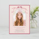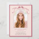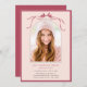 Invite friends and family to celebrate the graduate with this elegant invitation, featuring a deep blush ribbon bow with a arch photo.