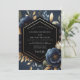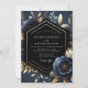 An opulent design featuring deep navy blooms and gilded foliage set against a dark backdrop. This arrangement evokes a sophisticated and dramatic ambiance, perfect for an elegant affair. The rich color palette adds a touch of dark romance to the presentation.