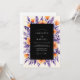This design features a striking contrast between deep purple foliage and vibrant orange blooms. Hand-painted watercolor elements include delicate lavender sprigs and lush ranunculus blossoms set against a dark, moody backdrop. The rich color palette creates an atmospheric and sophisticated aesthetic perfect for an autumnal or late summer event. Elegant botanical details surround the middle, offering a lush and artistic floral arrangement.