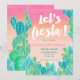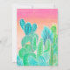 Deixe-nos a tipografia moderna branca da festa comemorar a celebração mexicana de Cinco de Mayo em um teste padrão pintado mão brilhante e colorido do cacto com rosa à aguarela coral do ombre