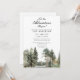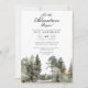 Este convite de chuvada de bebê elegante 'deixe a aventura começar' em aquarela floresta de lago pode ser personalizado com suas informações em tipografia moderna e uma foto especial, junto com os detalhes do código QR do seu registro no verso. Projetado por Thisisnotme©
