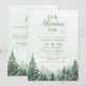 Este convite de chá de bebê com floresta de pinheiros aquarela "que a aventura comece" rústico e elegante pode ser personalizado com suas informações em tipografia moderna e código QR do seu registro e detalhes adicionais no verso. Projetado por Thisisnotme©