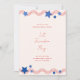 Celebre o aniversário da América com este convite divertido e patriótico para uma festa de bbq no quintal no dia 4 de julho, com listras vermelhas festivas e estrelas azuis em um fundo de cor marfim.