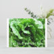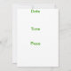 Um jogo bonito na alface das palavras que está no close up com as palavras deixou-nos entertain o em um roteiro verde mais claro. a parte traseira tem a data, o tempo e o lugar no mesmo roteiro verde.