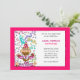Uma menina louca comendo bolo de chocolate. Este cartão é totalmente personalizável. Você pode adicionar, excluir ou editar os elementos de texto deste convite de aniversário