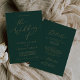 Esta delicada caligrafia de ouro verde em um convite de casamento é perfeita para um casamento moderno. A design romântica minimalista apresenta uma magnífica e elegante tipografia amarela ouro champanhe num fundo verde esmeralda com um aspecto simples e limpo. Salve o papel, incluindo os detalhes na parte traseira do convite de casamento, em vez de em um cartão de cercado separado. Inclua as informações de RSVP também se seu convidado estiver respondendo eletronicamente (opcional).
